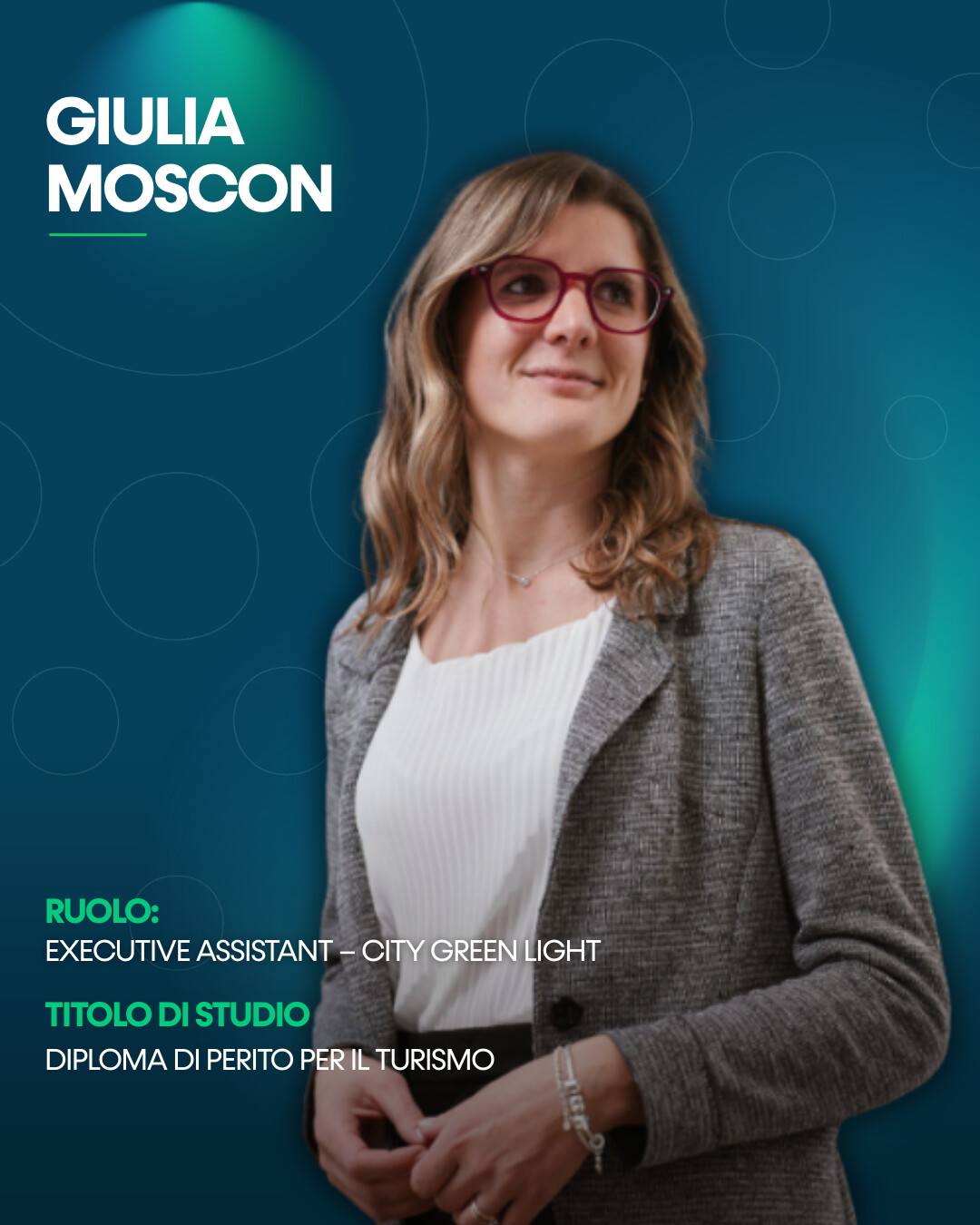 Mi sono diplomata nel 2008 come perito per il turismo all’Istituto Tecnico Piovene, dove ho studiato tre lingue straniere. Subito dopo il diploma ho iniziato a lavorare come controller energia e, nel tempo, il mio percorso si è evoluto verso ruoli di segreteria operativa nell’ambito della pubblica illuminazione. Con la nascita di City Green Light sono diventata Executive Assistant, un ruolo che mi ha permesso di consolidare l’esperienza maturata negli anni e di ampliarla ulteriormente, assumendo responsabilità sempre più trasversali e strategiche.