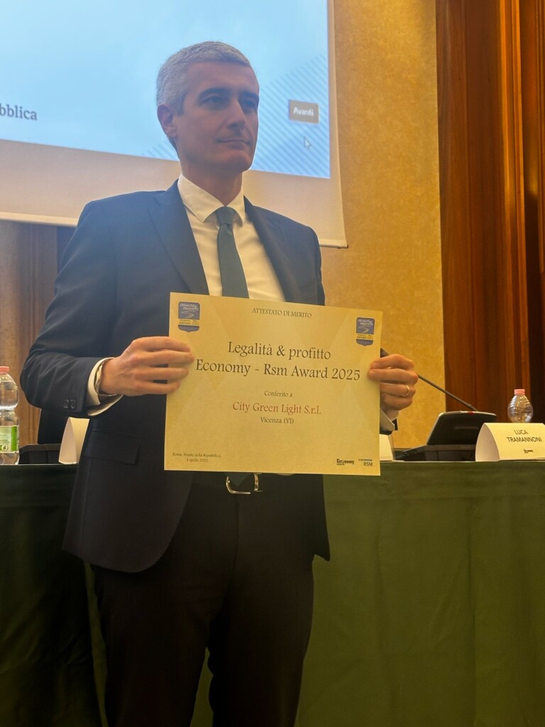 “Ricevere il premio ‘Legalità e Profitto’ è per City Green Light un riconoscimento di grande importanza, che ci riempie di orgoglio e ci sprona a proseguire con sempre maggiore determinazione nel nostro percorso. Non è solo un attestato della solidità economica della nostra azienda, ma soprattutto una conferma della capacità di coniugare successo imprenditoriale ed etica, dimostrando che la legalità e la trasparenza sono valori imprescindibili per costruire un futuro sostenibile. In un contesto economico complesso come quello attuale, crediamo fermamente che le aziende abbiano una responsabilità sociale fondamentale: quella di operare nel rispetto delle normative, dell’interesse pubblico e dei propri stakeholder. Per questo, abbiamo sempre posto la legalità e la trasparenza al centro del nostro modello di business, adottando pratiche commerciali virtuose e investendo in progetti che generano valore condiviso per il Paese. Questo premio ci conferma che la strada intrapresa è quella giusta e ci incoraggia a continuare a innovare e a crescere, mantenendo saldi i nostri principi e contribuendo attivamente alla costruzione di un’economia più responsabile e inclusiva“. Dichiara Alessandro Visentin, CEO di City Green Light.
