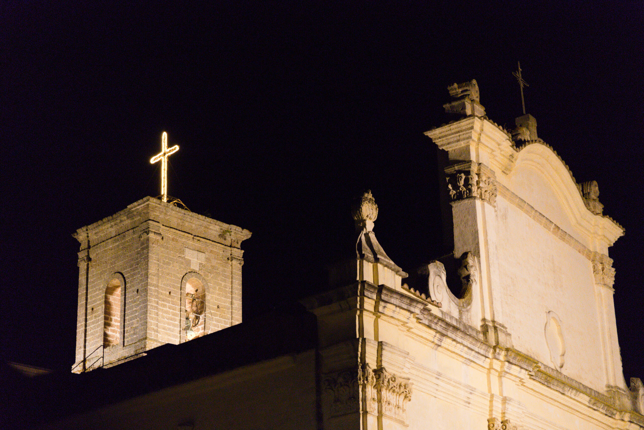 Particolare attenzione è stata riservata ai monumenti del borgo, come la Chiesa Madre e la Chiesa di Sant’Antonio. Qui la luce è stata studiata appositamente e i proiettori LED ad alta efficienza (Faeber, modello Fastled, 3.000K) valorizzano i prospetti e il campanile, mettendo in risalto la pietra leccese e creando un effetto elegante e armonioso. Questo intervento non solo esalta l’identità storica del paese, ma garantisce anche un notevole risparmio energetico e una maggiore durabilità delle apparecchiature, riducendo la necessità di manutenzioni frequenti.